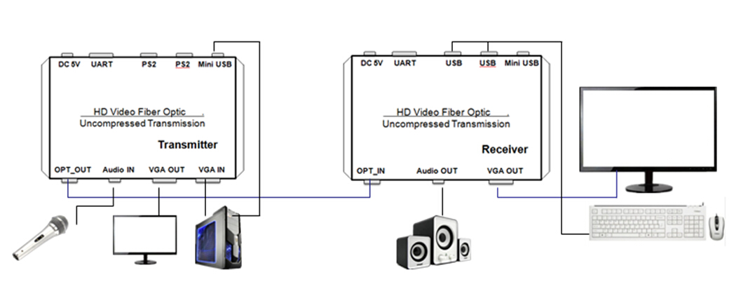 WS-HF102ADK是一套使用光纖傳輸高清視頻的延長器設(shè)備,只需單纖就能將1080p信號進行遠距離傳輸,支持音頻傳輸及鍵盤鼠標功能;這套產(chǎn)品非常適用于大屏幕拼接、