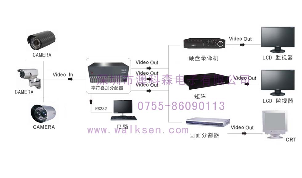 漢字字符疊加器適用于各類電視安防監(jiān)控系統(tǒng),可在視頻信號(hào)上疊加日期、時(shí)間和漢英字符信息。通過與計(jì)算機(jī)連接,可配套使用“4路 8路 16路 32路字符疊加器設(shè)置軟件”設(shè)定視頻輸入點(diǎn)的任意漢字或英文標(biāo)識(shí)信息。
